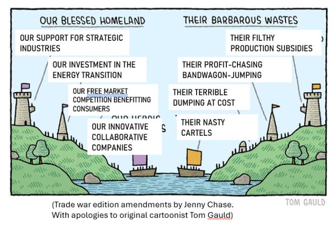 또한 국내 제조업 투자자들을 안심시키기 위한 측면도 있다. 그들은 인플레이션 감축법의 제조업체에 대한 관대함과 소비자 보조금에도 불구하고 국내산 친환경 제품을 능가하는 값싼 중국산 수입품이 범람할 것을 걱정한다. 새로운 보호 관세와 인플레이션 감축법 보조금의 조합은 미국에 기반을 둔 기업들이 친환경 기술을 따라잡을 수 있는 시간을 벌기 위한 것이다.