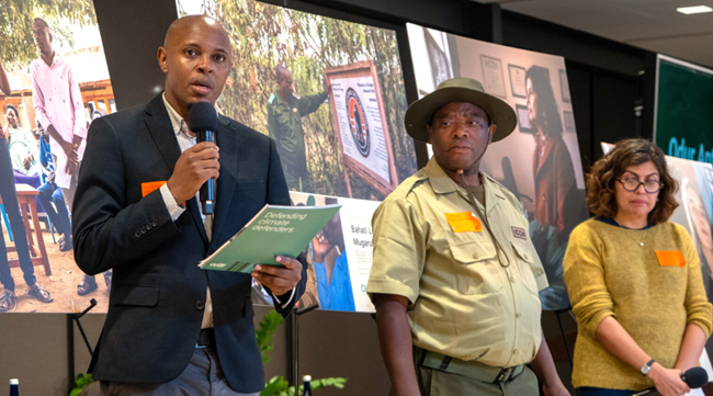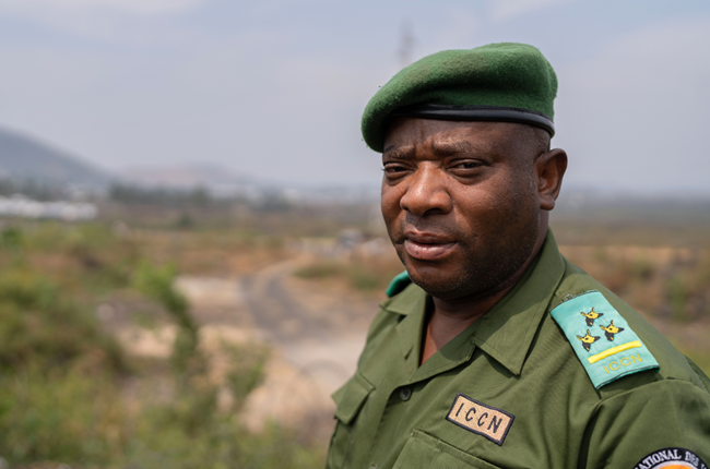 로드리게 무가루카 카템보는 콩고민주공화국의 비룽가 국립공원에서 20년 동안 공원 관리인으로 일하며 채굴 산업으로부터 공원을 보호하기 위해 싸워왔다. 그는 환경 보호 활동으로 인해 법적 분쟁과 끊임없는 신체적 위험의 위협에 직면해 있다. 출처: 모세 사와사와/CliDef