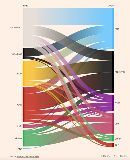 AfD는 모든 정당에서 표를 가져갔으며, 특히 메르츠의 기독민주연합(CDU), 침몰하는 자유민주당(FDP), 그리고 숄츠 총리 아래에서 활력을 잃은 사회민주당(SPD)으로부터 표를 얻었다. 그러나 AfD의 신규 득표 중 가장 큰 비중을 차지한 것은 이전에는 투표하지 않았던 180만 명의 유권자들이었다. 보기에는 불편할 수도 있지만, 이것이야말로 민주주의가 작동하는 방식이다.