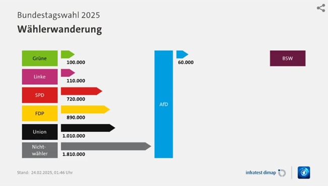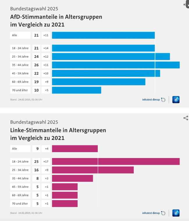 젊은 유권자들은 무엇보다도 독일 정치 체제에서 주변화된 정당들, 즉 AfD와 좌파당(Die Linke)에 투표했다.