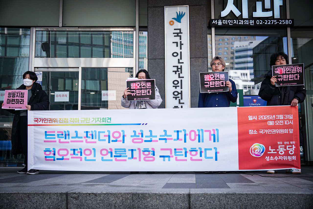 3월 31일 '트랜스젠더 가시화의 날'을 맞이해 트랜스젠더에 대한 "혐오적 여론을 확산하는 언론"과 이를 방기하는 "무기력한 국가인권위원회"를 규탄하는 움직임이 나왔다. 노동당 성소수자위원회는 31일 오전 국가인권위원회 앞에서 "무기력한 인권위와 혐오적 언론을 넘어, 트랜스젠더의 자리가 있는 나라"를 촉구하는 기자회견을 열었다. 이날 기자회견은 "트랜스젠더 혐오 언론"을 대상으로 한 진정에 국가인권위원회가 내린 각하 결정을 규탄하는 자리였다.