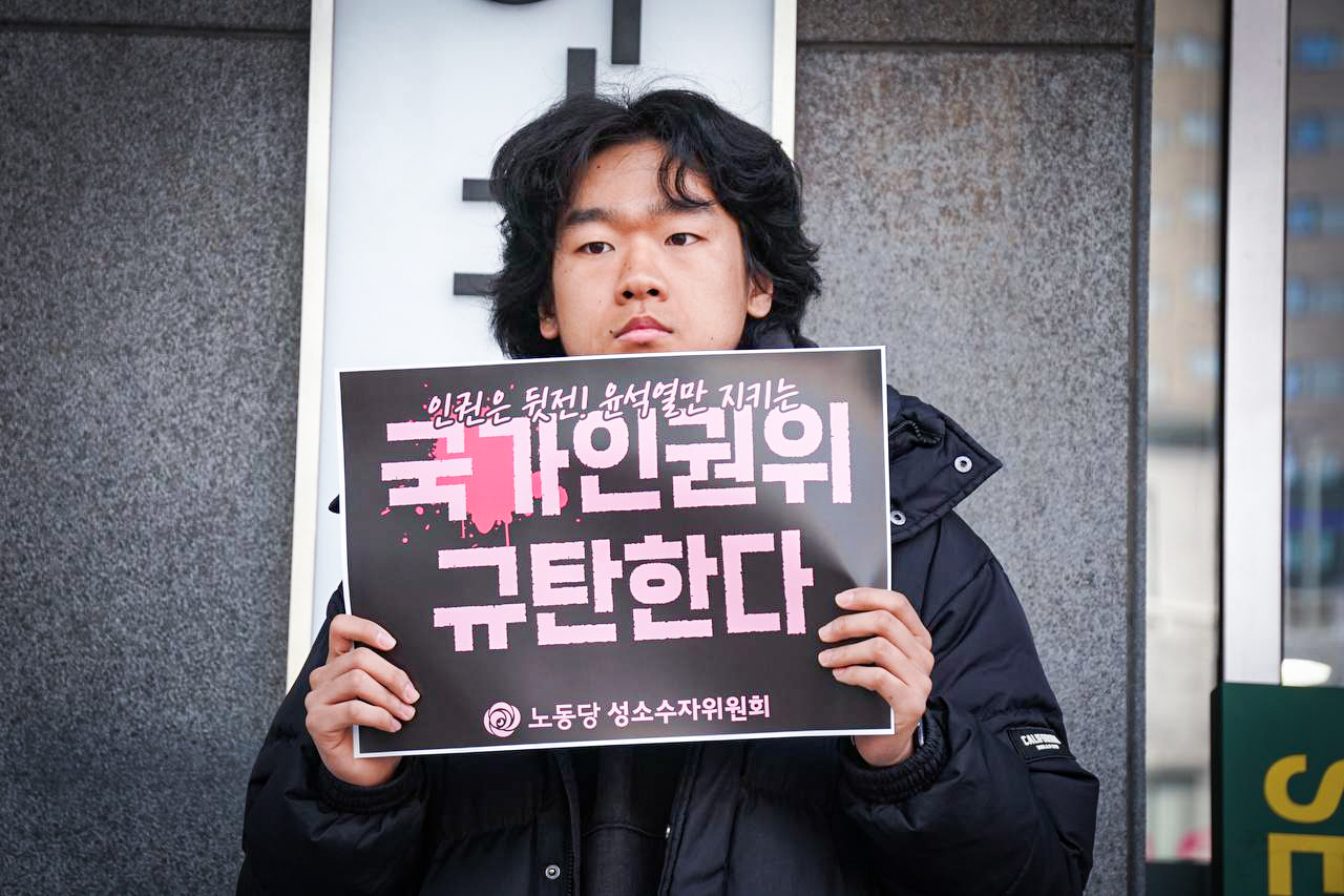 "인권은 뒷전! 윤석열만 지키는 국가인권위 규탄한다". 노동당 성소수자위원회