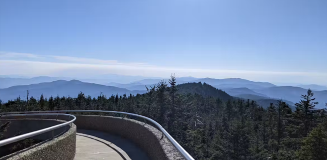 그레이트 스모키 산맥(Great Smoky Mountains)에 위치한 쿠워히(Kuwohi, 이전 명칭: 클링먼스 돔 Clingmans Dome)의 전망대에서 바라본 풍경. 출처: 미국 국립공원관리청