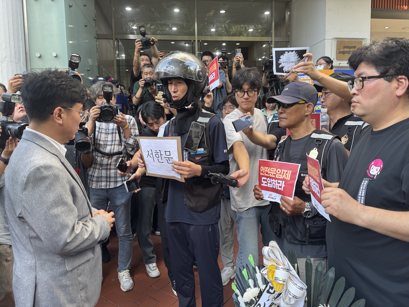 앞서 민주노총 건물 앞에서 김영훈 노동부 장관을 만난 배달 노동자들은 김 장관에게 서한문을 전달하면서 분향소 설치 계획을 밝히고 조문을 제안하기도 했다.