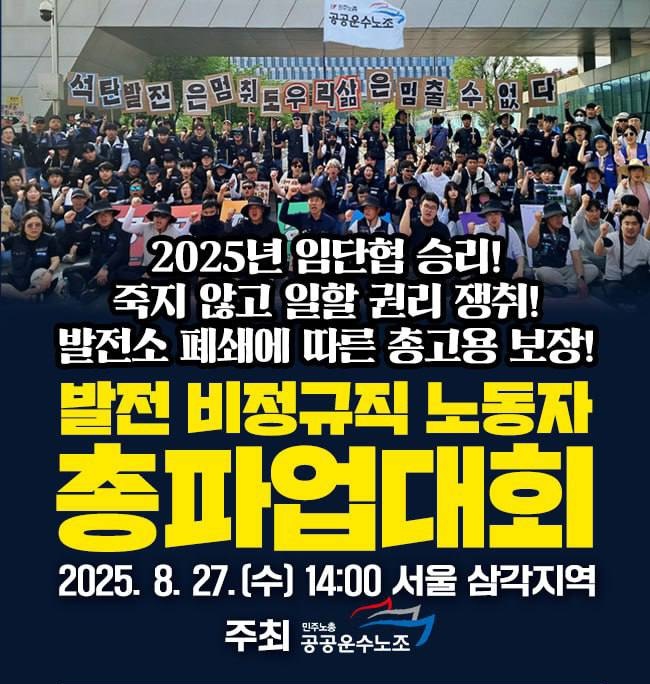 또한 최근 “공공재생에너지법 입법 청원이 5만 명의 참여를 달성했다”며 “공공재생에너지법 제정과 이행을 비롯해, 발전소 현장과 시민들이 함께 안전하게 일하고 살아갈 권리가 보장되는 세상을 만들기 위한 투쟁에 함께해주시길 바란다”고 호소했다.