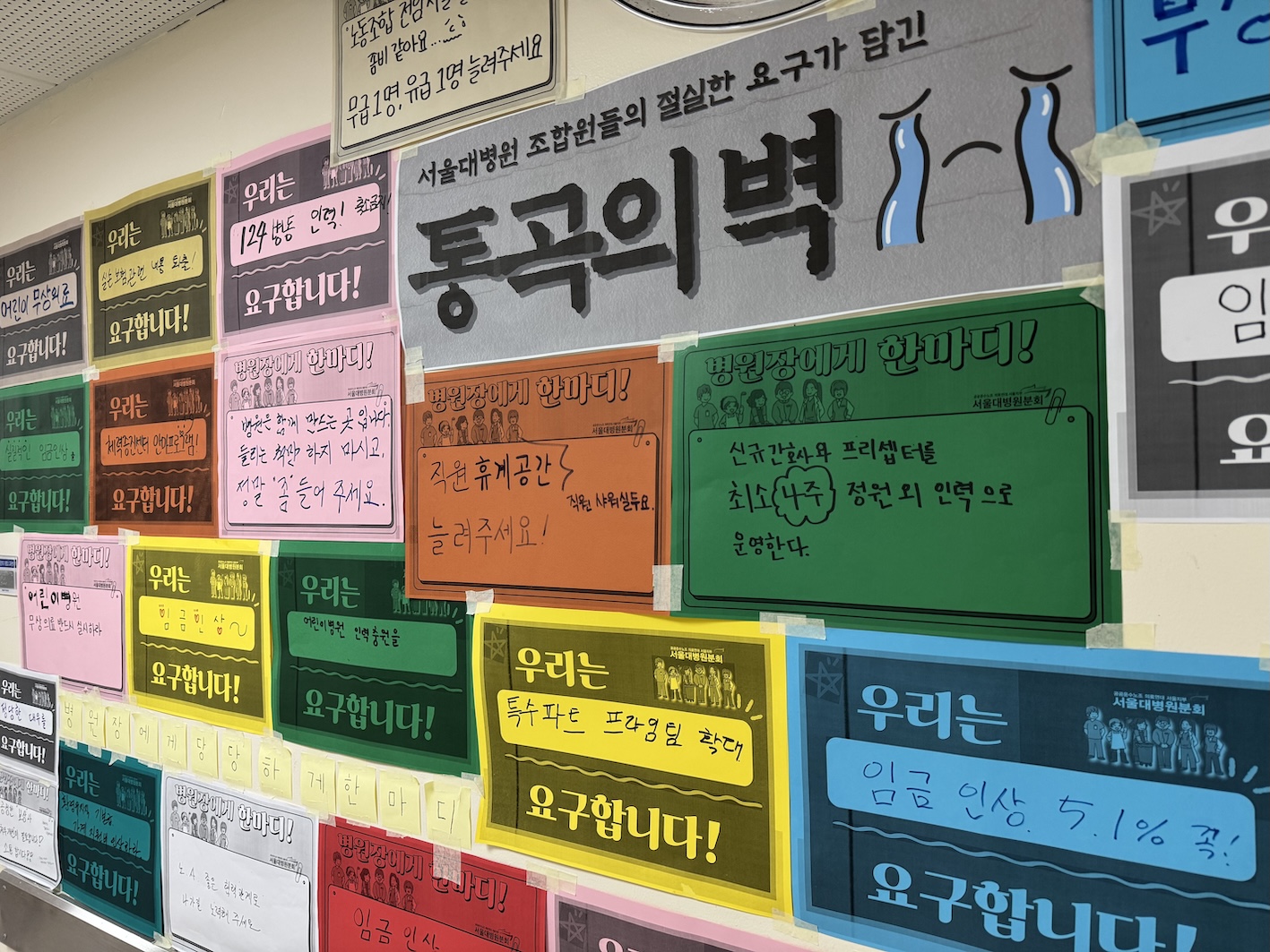 의료연대본부 서울대병원분회 조합원들이 병원 복도에 만든 "통곡의 벽". 참세상