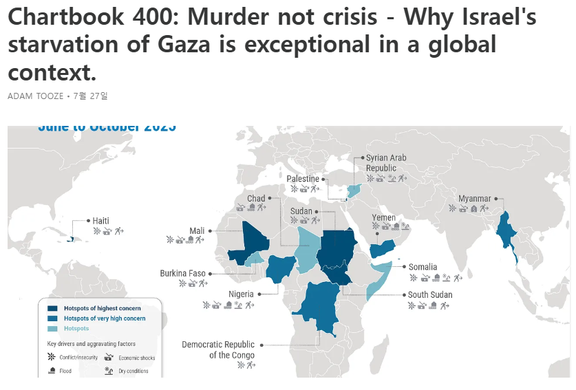 위기가 아니라 학살이다: 가자지구 전쟁범죄 재정 해부/ 수개월에 걸쳐, 이스라엘 정부와 군, 이스라엘 정치 및 사회의 일부 세력, 그리고 그들을 해외에서 지지하고 돕는 이들까지 포함해, 이들이 가자(Gaza) 주민들을 고의로 굶주리게 하고 있다는 점은 더 이상 합리적인 의심의 여지가 없다. 이들은 가자 주민들이 도망치거나, 그렇지 않으면 점점 더 극심해지는 고통과 결국은 극심한 고통 속 죽음을 감내하게 만들려는 목적을 가지고 행동해 왔다.
