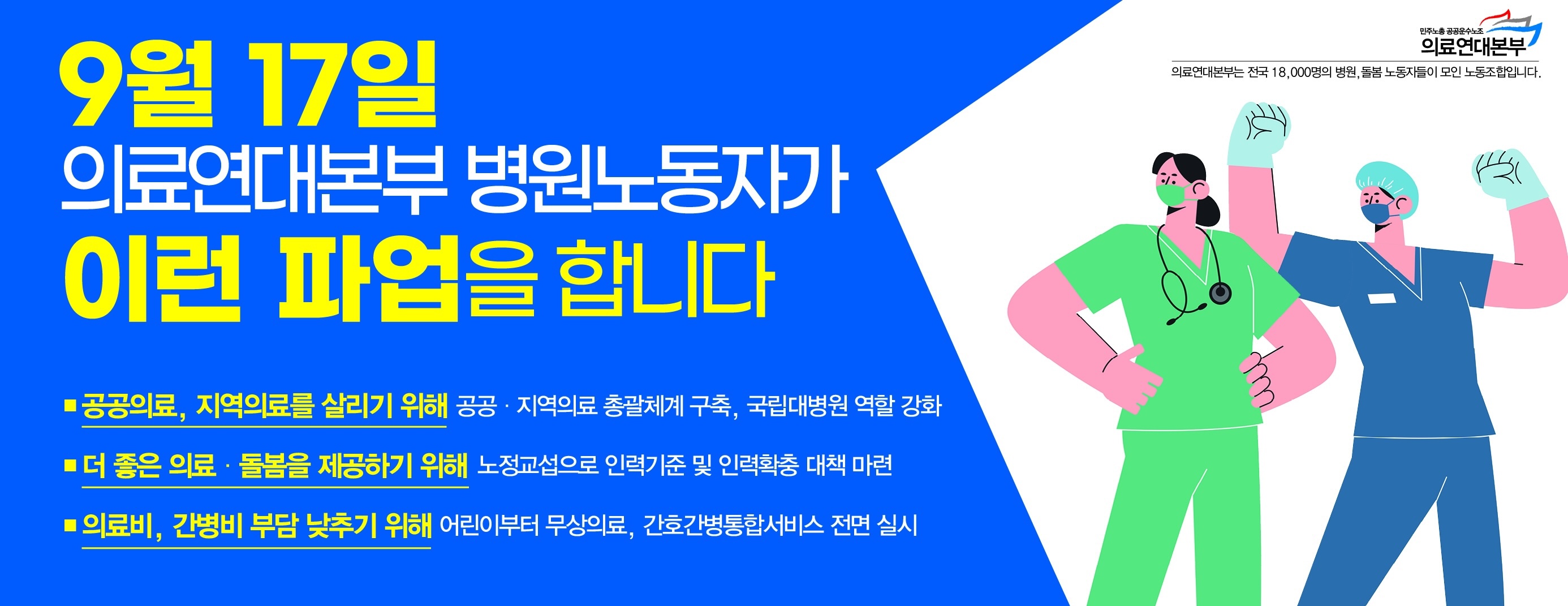 박 본부장은 “9월 17일 파업에도 정부와 병원 측이 의료연대본부의 요구를 수용하지 않는다면 우리는 곧이어 2차 파업에 돌입할 예정”이라며 “환자들이 의료공백으로 고통받지 않고 노동자들이 안전하게 환자를 돌볼 수 있을 때까지 의료연대본부는 투쟁을 멈추지 않겠다”고 힘 주어 말했다.