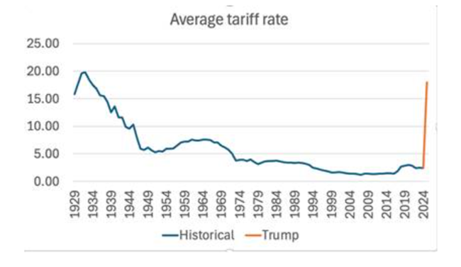 그리고 트럼프 행정부의 향후 몇 년 동안고소득자를 위한 법인세 및 소득세 감세가 관세 인상으로 얻는 세수 증가분보다 훨씬 더 큰 세수 감소를 초래할 것이다사실상 이러한 감세는 역사상 단일 법안으로 정부가 가난한 계층에서 부유층으로 소득을 가장 대규모로 이전한 사례가 될 것이다.
