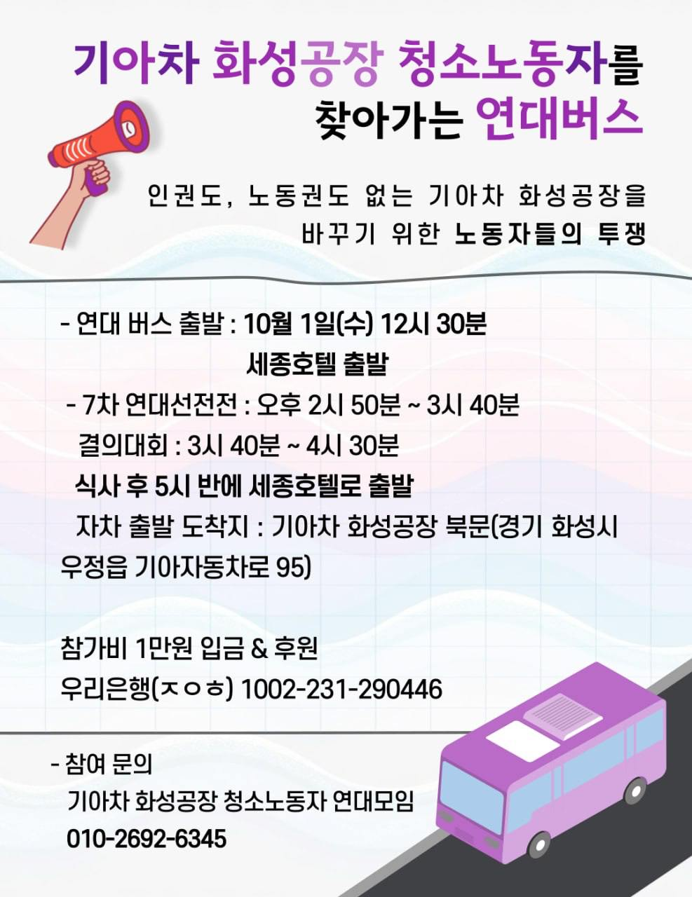 기아자동차 화성공장 청소노동자의 투쟁은 처음에는 부당 업무 지시 철회, 성적 괴롭힘 문제 해결에서 시작하여 부당 해고᛫징계 철회로 확대되었다. 그리고 지금은 원청 자본과 맞서는 투쟁으로 확대되고 있다. 하청 노동자뿐만 아니라 원청 노동자까지 연대하여 원청 자본에 맞설 힘을 갖추고 있다는 점에서 청소노동자의 투쟁은 향후 노란봉투법 시행 시기에 마주할 비정규직 투쟁에 영향을 미칠 것이다.