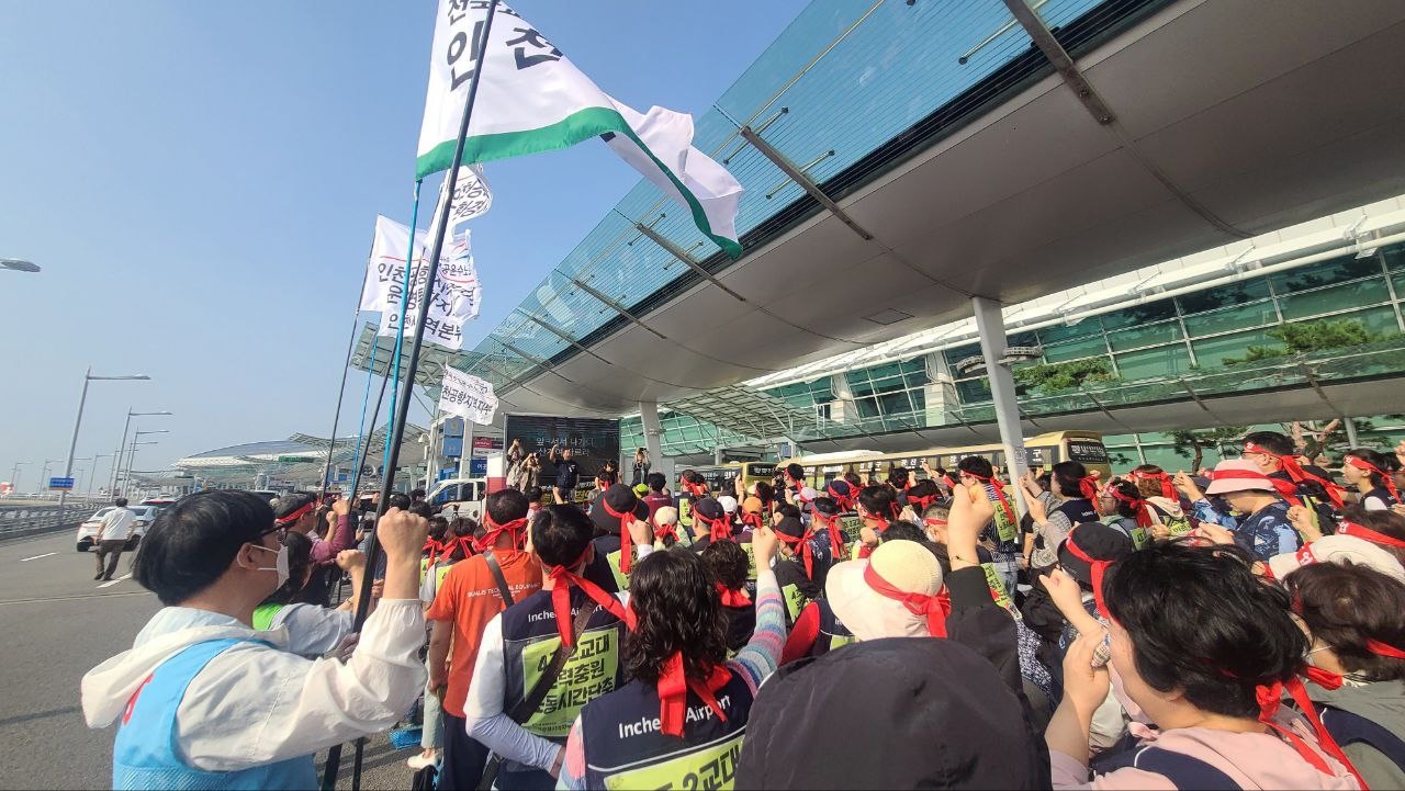 전국공항노동자연대는 지난 19일 하루 파업을 통해 공항 노동자들이 마주한 “열악한 노동환경과 불공정 계약 구조의 개선”을 요구했으나 사측은 노동자들의 교섭 요구에 응하지 않고 있다고 한다. 이에 “죽음의 공항을 멈추고 안전한 일터·안전한 공항을 만들어야 한다는 절박한 심정으로 일손을 놓고” 무기한 파업에 나선다며 “공항 노동자의 생존권과 공정한 처우, 공항 안전을 위한” 투쟁에 시민사회의 너른 관심과 연대를 호소했다.