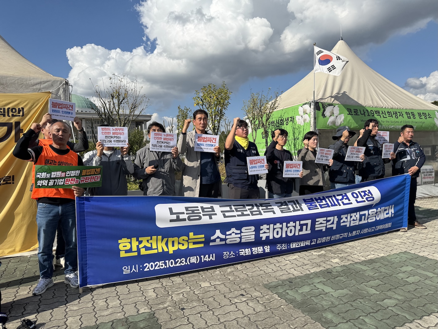 또한 이번 결과는 “법원이 이미 인정한 불법파견을, 정부가 다시 확인한 것”이라며 “그럼에도 한전KPS는 법원의 판결에 항소하며 불법 구조를 유지하려 한다” 비판하고, “이제 한전KPS는 더 이상 도망칠 곳이 없다”, “즉시 시정지시를 이행하고, 태안뿐 아니라 모든 발전소 하청노동자들을 직접고용해야 한다”고 촉구했다.