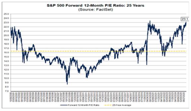 그러나 정말로 모든 것이 그렇게 좋은가? 이번 주식시장 호황으로 인해 주가 대비 기업이익 비율, 즉 주가수익비율(P/E ratio)은 사상 최고 수준으로 치솟았다. 이 비율은 현재 역사적 평균보다 약 40퍼센트 높으며, 2000년 ‘닷컴 버블’ 당시 수준을 넘어섰다. 당시 버블이 터졌을 때, P/E 비율은 40퍼센트 급락했다.