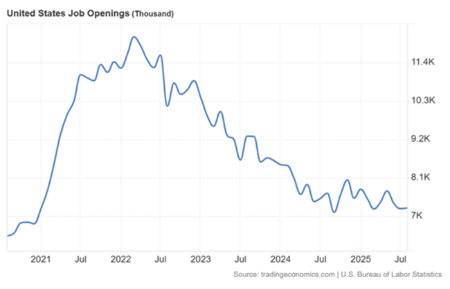 ‘매그니피센트 세븐’으로 불리는 대형 기술 기업들조차 막대한 AI 투자 지출로 인해 이익 증가율이 하락할 것으로 예상하고 있다. 메타와 아마존의 경우, 이익이 거의 제로 수준까지 떨어질 것으로 보인다. 한편 노동자들에게는 노동시장이 점점 약화되고 있다. 순증 일자리는 사라지고 있다.