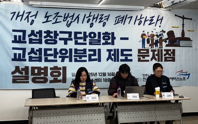 공공운수노조는 16교섭창구 단일화와 교섭단위 분리 제도의 문제점'을 설명하는 자리를 가졌다. 개정 노조법 시행령에 포함된 교섭창구단일화·교섭단위 분리 제도가 실제 사업장에서 어떻게 작동하고 있는지에 대한 현장 사례가 공유됐다. 발표자들은 제도가 노동조합 간 자율적 교섭을 보장하기보다, 사용자에게 교섭 상대를 선택할 수 있는 권한을 부여하고 있다고 지적했다.