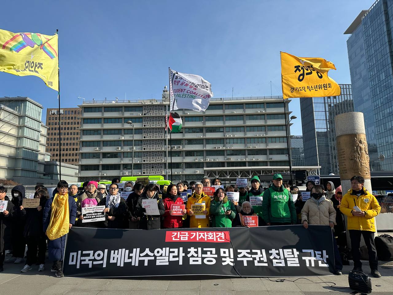 정의당을 비롯한 56개 단체는 4일 오후 1시 서울 종로구 주한 미국대사관 앞에서 기자회견을 열고 “미국은 베네수엘라에 대한 군사행동을 즉각 중단하고 마두로 대통령을 석방하라”고 촉구했다.