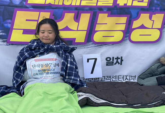 명절 연휴에도 김금영 지부장은 단식을 이어갔다. 출처: 공공운수노조