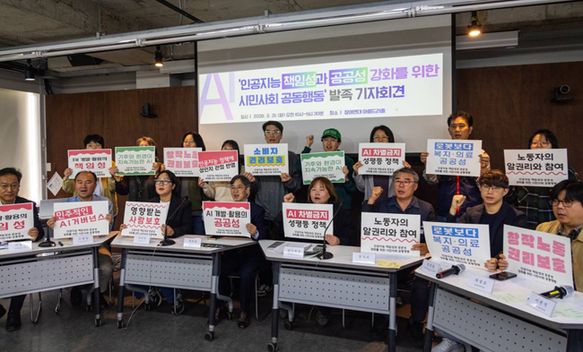 인권·노동·복지·여성·환경·평화 등 전국 41개 시민사회단체가 31일 ‘인공지능 책임성과 공공성 강화를 위한 시민사회 공동행동’(AI시민행동)을 발족하고, 정부의 인공지능 정책을 산업 육성 중심에서 책임성과 공공성, 민주적 거버넌스를 중심에 둔 방향으로 전환해야 한다고 밝혔다. 이들은 이날 참여연대 아름드리홀에서 발족 기자회견을 열고 AI 정책 전반에 시민과 노동자, 소비자 등 영향받는 당사자의 참여를 보장해야 한다고 촉구했다.