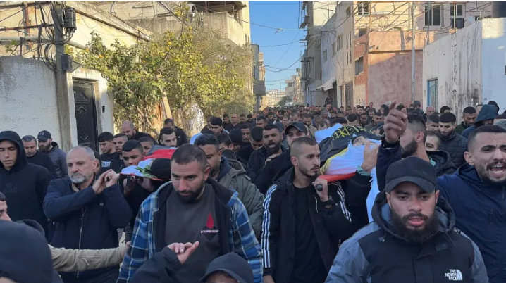 팔레스타인 자치정부 보안군에 의해 살해된 제닌 여단장을 포함한 지역 주민들의 장례식에 참석한 제닌의 팔레스타인 사람들. 출처: 무하메드 아티크/알자지라