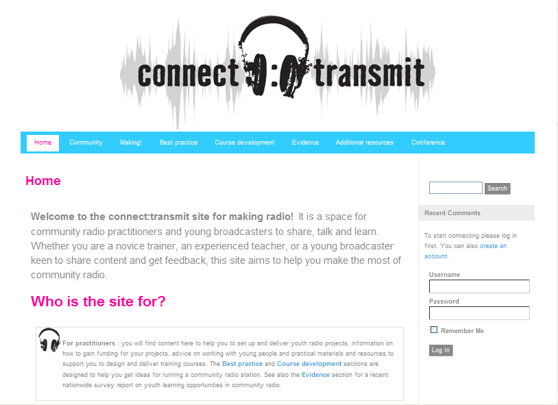 웹사이트의 첫 화면을 보면 이곳이 만들어진 목적이 간략하게 소개되어 있다. 커넥트:트랜스밋은 공동체 라디오 활동을 이미 하고 있는 이들과 처음 ...