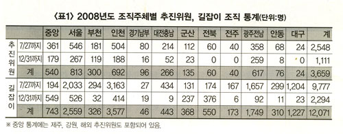 2008년 한 해 ‘주한미군 내보내는 평화협정실현운동’을 통해 전국 곳곳에 추진위원 3,659명, 길잡이 12,071명이 모집되었습니다. 2...