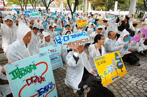 아프간 재 파병 규탄 및 오바마 미 대통령 방한에 즈음한 광주전남 지역 기자회견을 진행 11월 13일 비가오는 가운데에서도 6.15공동선언실천...
