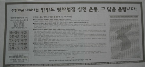 "주한미군 내보내는 한반도 평화협정 실현운동 선포식" 에 즈음하여 국민여러분께 드리는 글