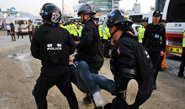 삼성전자서비스 충남 아산센터 앞에서 31일 경찰병력과 노동자들이 충돌한 일과 관련해 경찰의 ‘과잉 진압’ 논란이 일고 있다. 노동계와 법조계는 ...