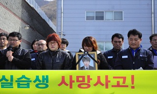 민주노총울산본부와 울산지역 노동자건강원대책위원회는 27일 금영ETS(북구 연암동 모듈화산업단지)를 방문해 고등학교 현장실습생 김대환(현대공고, ...
