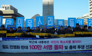 ‘KTX민영화저지 철도공공성강화 범국민대책위원회(범대위)’는 20일 오후, 광화문 이순신 동상 앞에서 기자회견을 열고 “철도민영화 반대 서명운동...