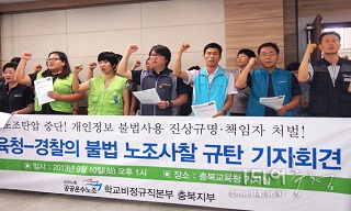 충북도교육청과 경찰이 개별노동자들의 개인정보를 통해 노조와 노조활동을 감시, 사찰했다는 주장이 제기돼 노동계가 강하게 반발하고 나섰다.