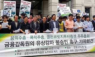 골든브릿지투자증권이 5월 31일 주주총회에서 용역업체 직원까지 투입해 기습적으로 유상감자를 결정해 논란이 확산되고 있다. 용역 폭력 속에 진행된...