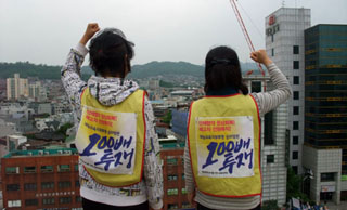 5월 15일이면 재능교육지부 여성 조합원 2명이 ‘해고자 전원복직, 단체협약 원상회복’을 요구하며 혜화동 종탑에 오른 지 100일을 맞는다. 학...