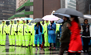 서울 중구청이 지난 4일 새벽 쌍용차 대한문 분향소를 기습적으로 철거한 이후 서울 남대문경찰서가 바로 다음날 질서유지선을 설정해 경찰이 신고된 ...