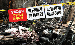 쌍용자동차 범국민대책위원회는 4일 서울 덕수궁 대한문 앞에서 기자회견을 열고 쌍용차 분향소 방화사건의 철저한 수사와 정리해고 문제 해결 등을 촉...