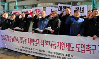 전국공무원노조 반값등록금실현과 공무원대학생자녀학자금쟁취 공동투쟁위원회는 27일 기자회견을 열고 행정안전부에 대학등록금 문제 해결과 공무원 대학생...
