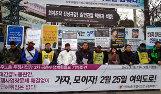 민주노총 산하 67개 투쟁사업장들이 박근혜 당선자 취임에 맞춰 공동투쟁에 나선다. 이들은 박근혜 당선인이 취임식 전까지 투쟁사업장 문제를 해결하...