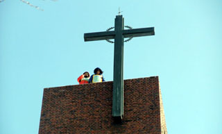 재능교육지부 여민희, 오수영 조합원은 6일 오전 9시경, 대학로 혜화동 성당 약 30m 높이의 종탑에 올랐다. 이들은 종탑 위에서 ‘단체협약 원...