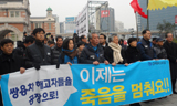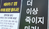 1일 오전 11시 금속노조쌍용차지부, 공공운수철도노조, KT공대위는 서울 청운동사무소 앞에서 기자회견을 열고 ‘노동자들에 대한 사회적 타살을 멈...