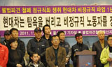 울산지역 21개 시민사회단체는 불법파견 철폐와 정규직화 쟁취를 위한 현대차비정규직 파업 1주년을 맞아 15일 울산시 프레스센터에서 기자회견을 열...