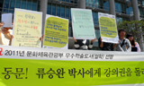 21일 오전 11시 성균관대학교 600주년 기념관 앞에서 대학생들과 전국대학강사노조는 류승완 박사에 대한 강의권 박탈과 학문연구를 탄압하는 학교...