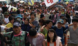 정리해고 철회의 희망이 되고자 '소금꽃 천리길'을 걸어 450킬로미터를 걸어서 부산 한진중공업 영도조선소를 향한 쌍용차 해고자와 시민들이 오후 ...