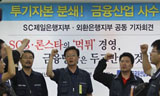 SC제일은행지부가 성과급 도입 등에 반대하며 10일째 파업을 진행하는 가운데 금융노조가 6일 기자회견을 열고 성과연봉제 도입 문제, SCB(제일...