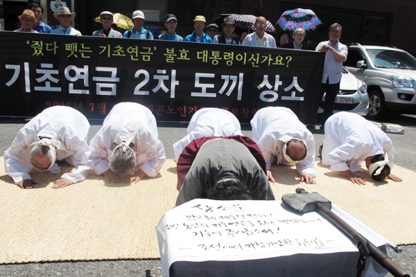 기초연금 시행 1년이 된 7월 1일, 기초생활 수급 노인들이 또 다시 박근혜 대통령에게 도끼 상소를 올렸다. 1년 전에도 수급자 노인들이 도끼 ...