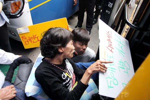 추석 연휴를 앞두고 전국에서 장애인들이 국토교통부, 버스운송사업자 등에 시외 이동권을 보장하라며 '버스 타기'를 시도했다.