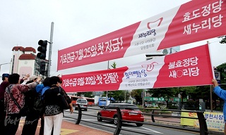 서울 독립문 앞 사거리에 걸린 새누리당의 현수막 문구다. 박근혜 대통령이 공약으로 내걸었던 대로 기존 기초노령연금을 '기초연금'으로 확대하고, ...