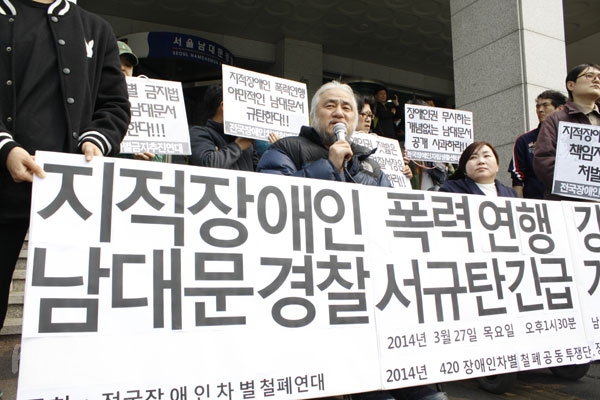 2014년 420장애인차별철폐공동투쟁단(아래 420공투단)이 26일 늦은 2시 30분 서울 보신각 앞에서 제10회 전국장애인대회를 열고 공식 출...