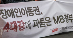 “MB정부는 4대강 사업에 모든 예산을 쏟아 부으면서, 장애인이동권 보장을 위한 예산을 크게 삭감시켜왔고, 그 결과 장애인이동권은 4대강에 파묻...