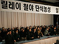 2일 공청회가 무산되자 농민-노동사회단체 대표자들은 공청회장 입구에서 긴급 기자회견을 개최했다.