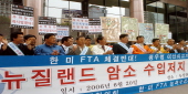 축산관련단체협의회와 한미FTA저지 농축수산비상대책위원회는 20일 ‘미국산 쇠고기 수입 강요 반대’와 ‘뉴질랜드 산 암소수출 중단’을 촉구하는 기...